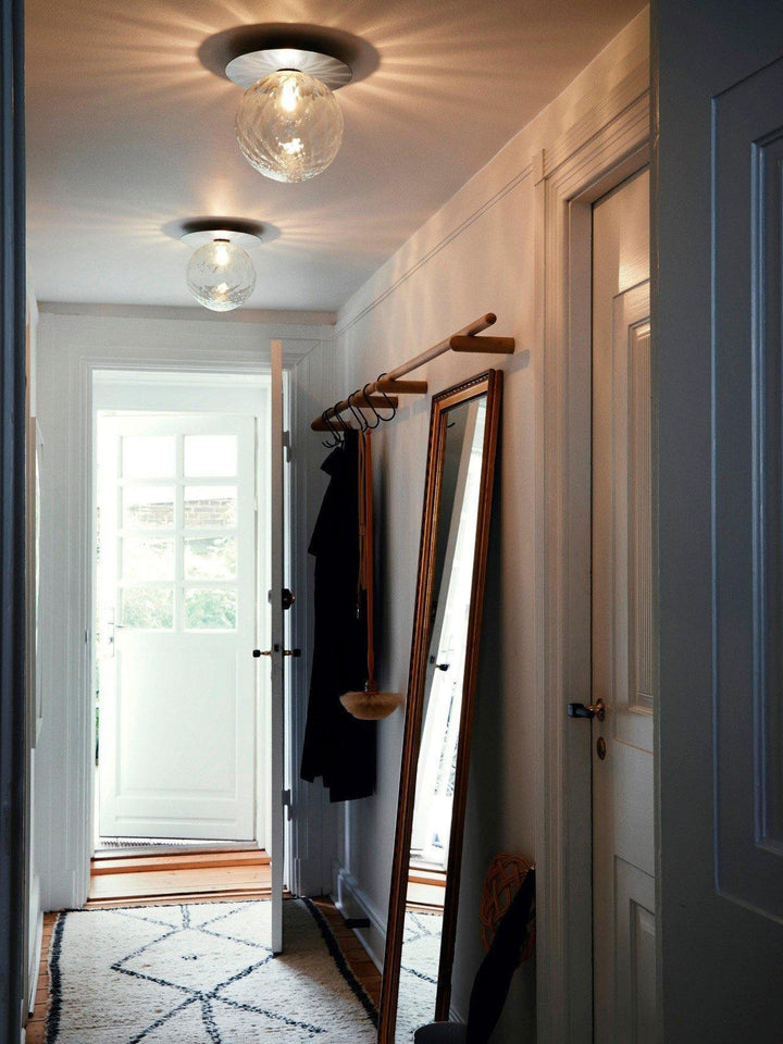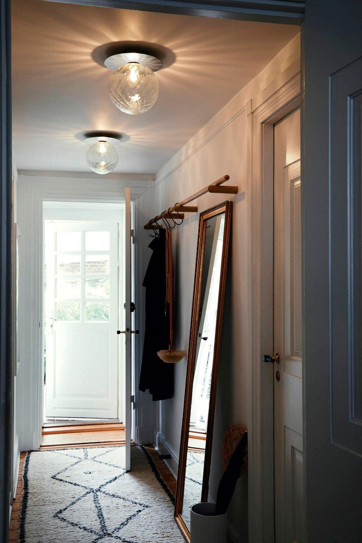 Lunara is a single lamp that enhances both walls and ceilings with its elegant design. Featuring a slim, circular metal disc and a distinctive, mouth-blown glass sphere, Lunara is perfect for smaller spaces and entryways, combining simplicity with sophisticated charm.