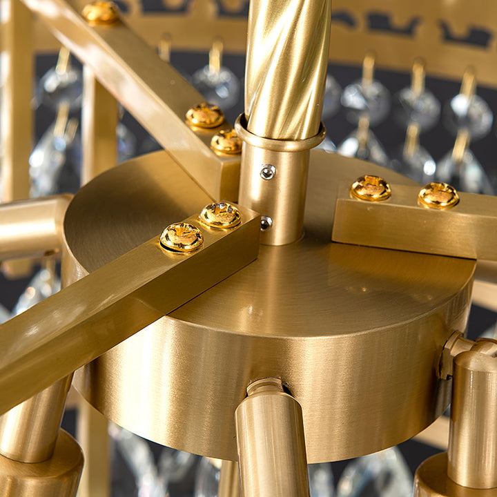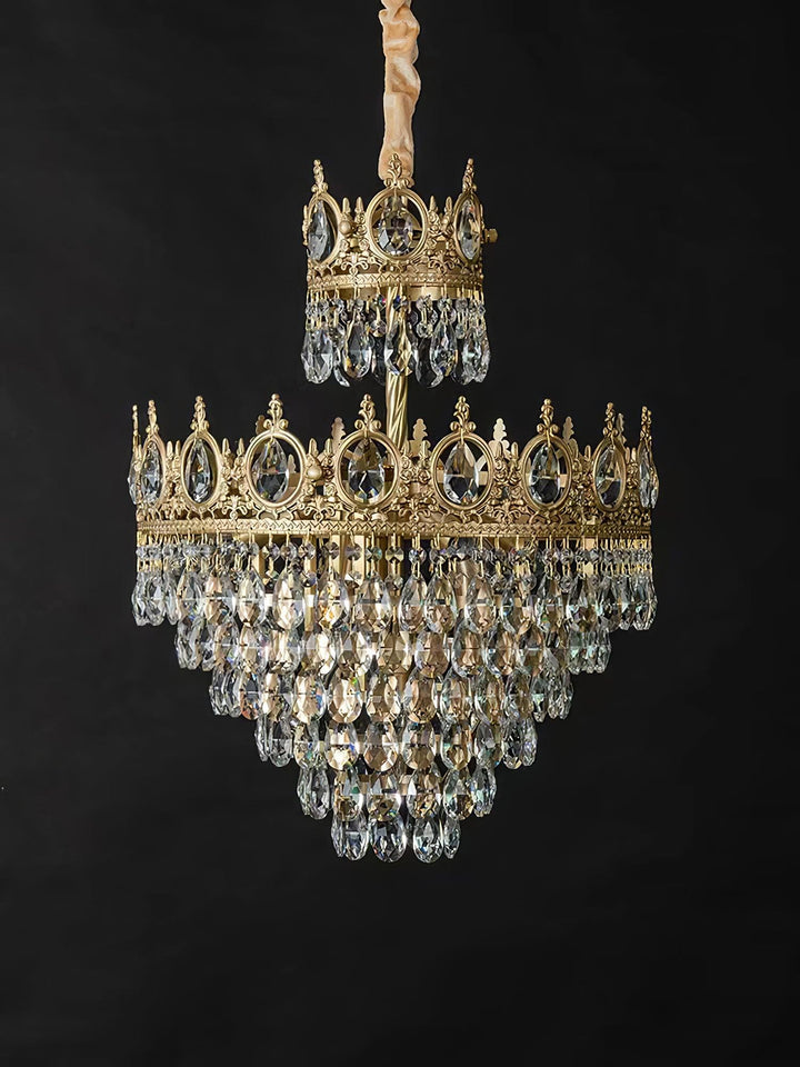 This elegant, vintage crystal chandelier is handmade in solid and dressed with high lead vintage crystal droplets. The vintage ceiling chandelier is from the late 1950s and is in superb condition. We have re-wired the chandelier and changed the light bulb sockets to make the ceiling pendant fully operational. We have kept all the original pieces of the chandelier intact, and we have replaced some broken crystals with vintage crystal droplets.