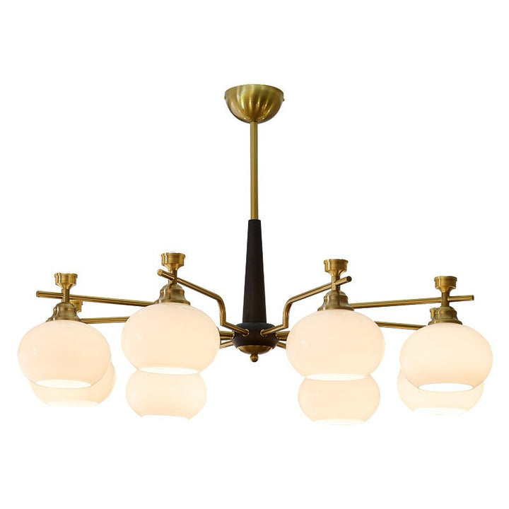 The Alistair Sphere Chandelier by Vakkerlight combines sleek gold accents with soft, frosted glass globes to create a striking statement piece. Its unique, modern design makes it the perfect fixture to illuminate dining rooms or living spaces with a sophisticated glow.