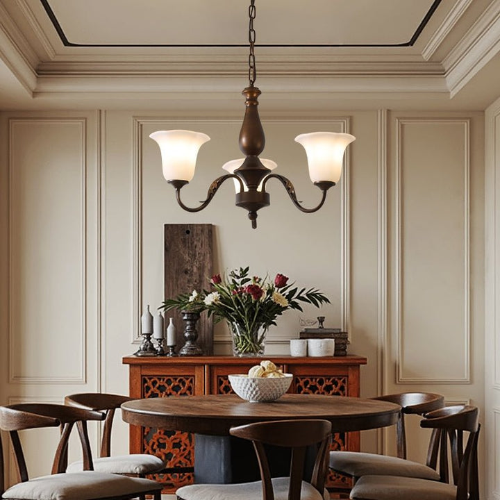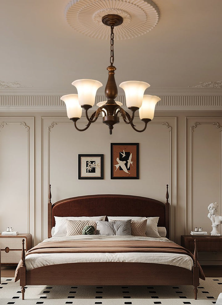 The Aurelia Fleur Chandelier by Vakkerlight combines graceful curves with frosted glass shades to create a refined, elegant design. Its timeless beauty and soft illumination bring warmth to any room, making it an ideal centerpiece for both contemporary and classic interiors.