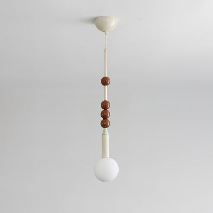 Introducing the Beadstream Pendant Light - a charming blend of polished brown and beige beads, perfect for adding whimsy to any space. The spherical frosted bulb provides soft, diffused light, ideal for cozy corners and modern interiors. A unique and visually appealing pendant lamp that combines handcrafted art with modern functionality.