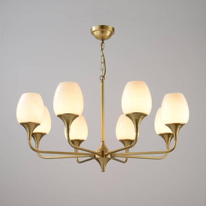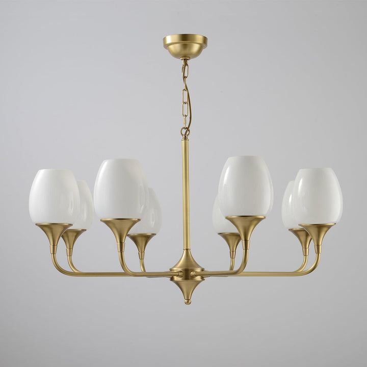This chandelier recalls the beautiful past with this charming, and just ever so slightly drama inducing, candle-style chandelier. With eight undulating arms that proudly hold up the bright lights, it is as if you are transported into a world of constant debutante balls and society gatherings--even if you really are just hosting a friendly dinner or reading your favorite novel after work. You can enjoy the recollections of the past while still enjoying the simple luxuries of your modern-day home.