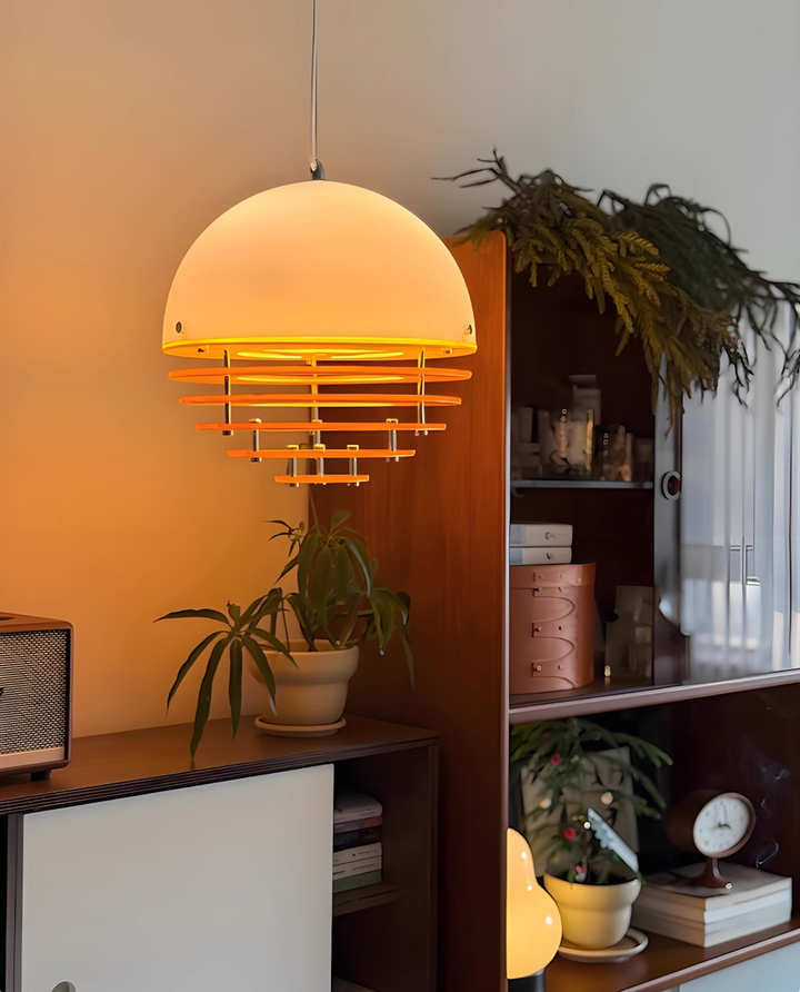 Bring a bold, mid-century modern aesthetic and a splash of color to your kitchen island, dining room, or entryway with this striking pendant light. The design is a sophisticated play on shape and color, featuring a smooth, Half-Dome Diffuser crafted from Opaline or Frosted White Glass, ensuring a soft, glare-free light from above.