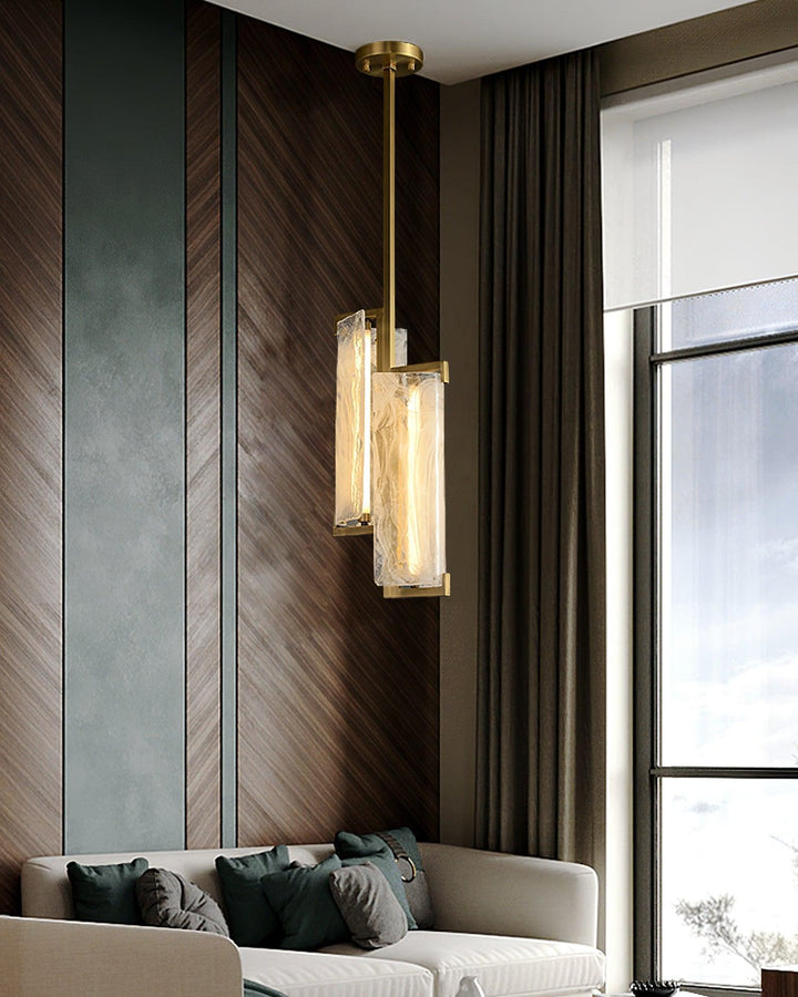 Cloud Fog LED pendant featuring highly polished parallel forms of rich Cloud Fog textured, the hand-cast, Cloud Fog Pendant Lamp is driven to achieve the highest artistic standards by creating original lighting designs of beautifully handcrafted metal, handblown glass, and other unique materials.