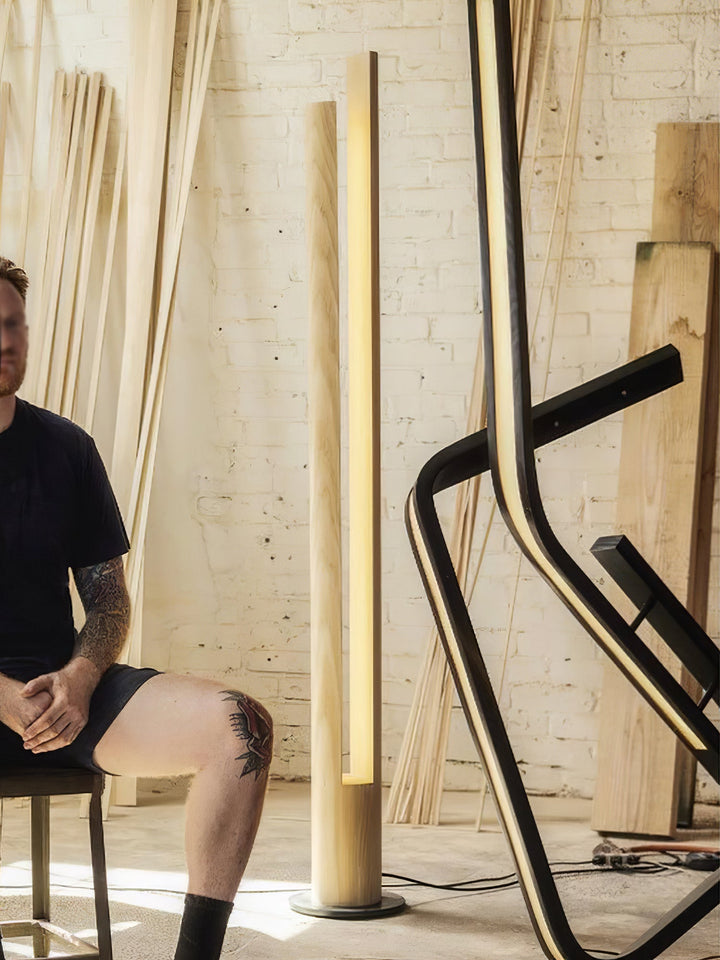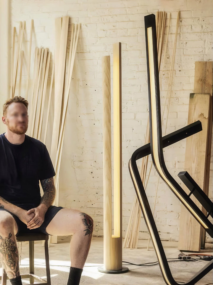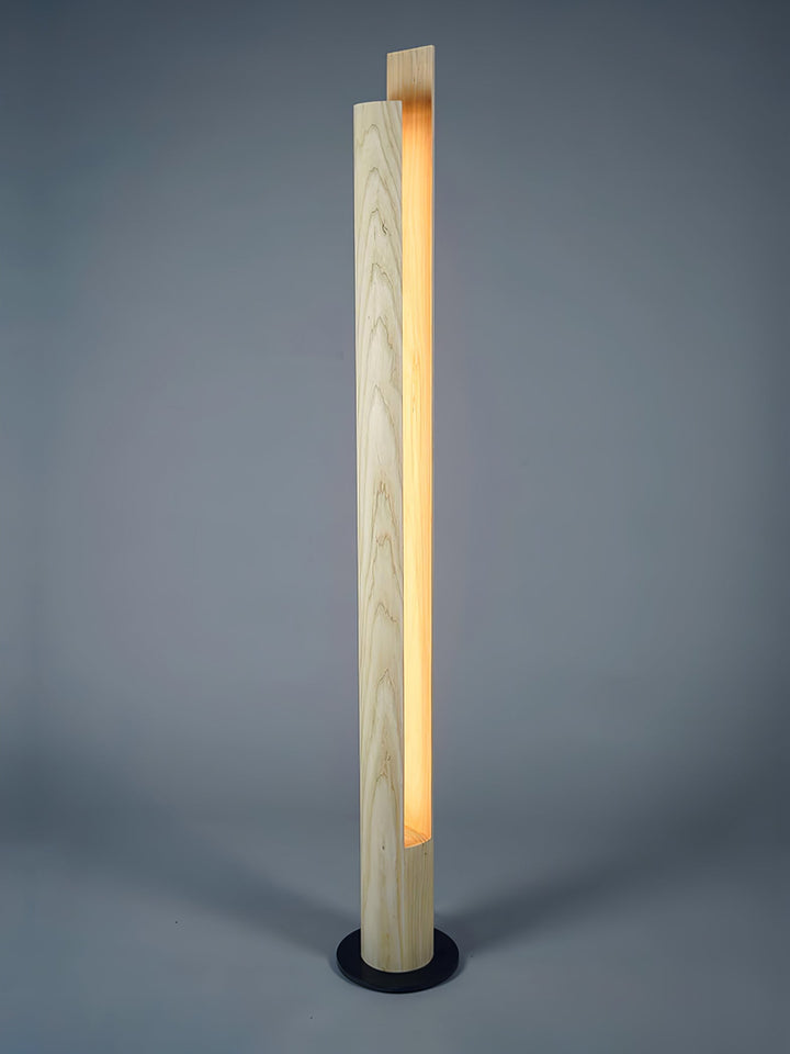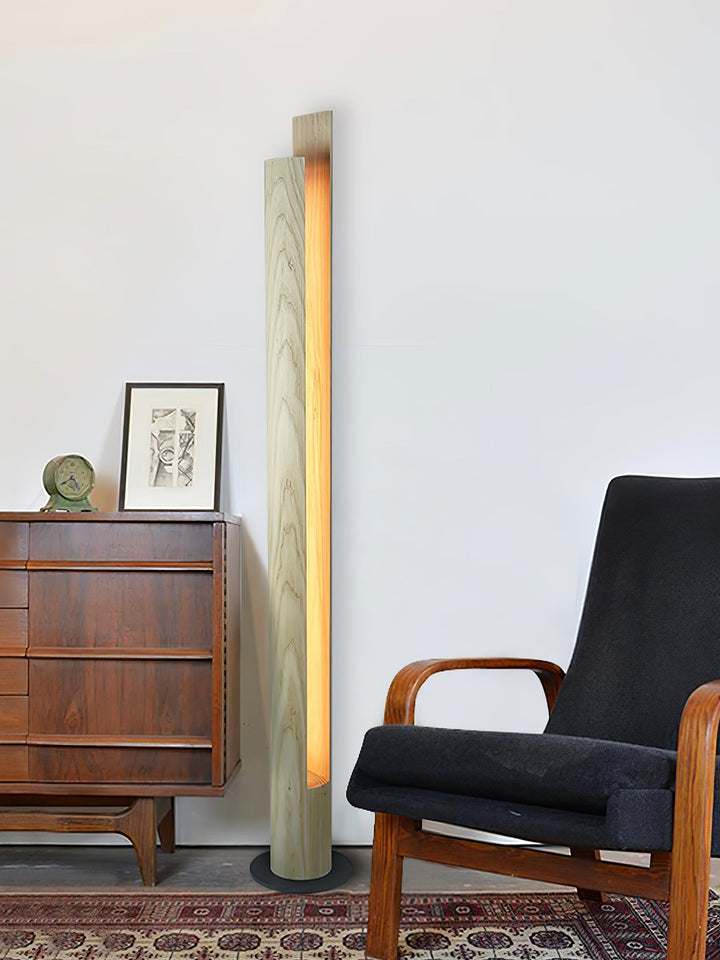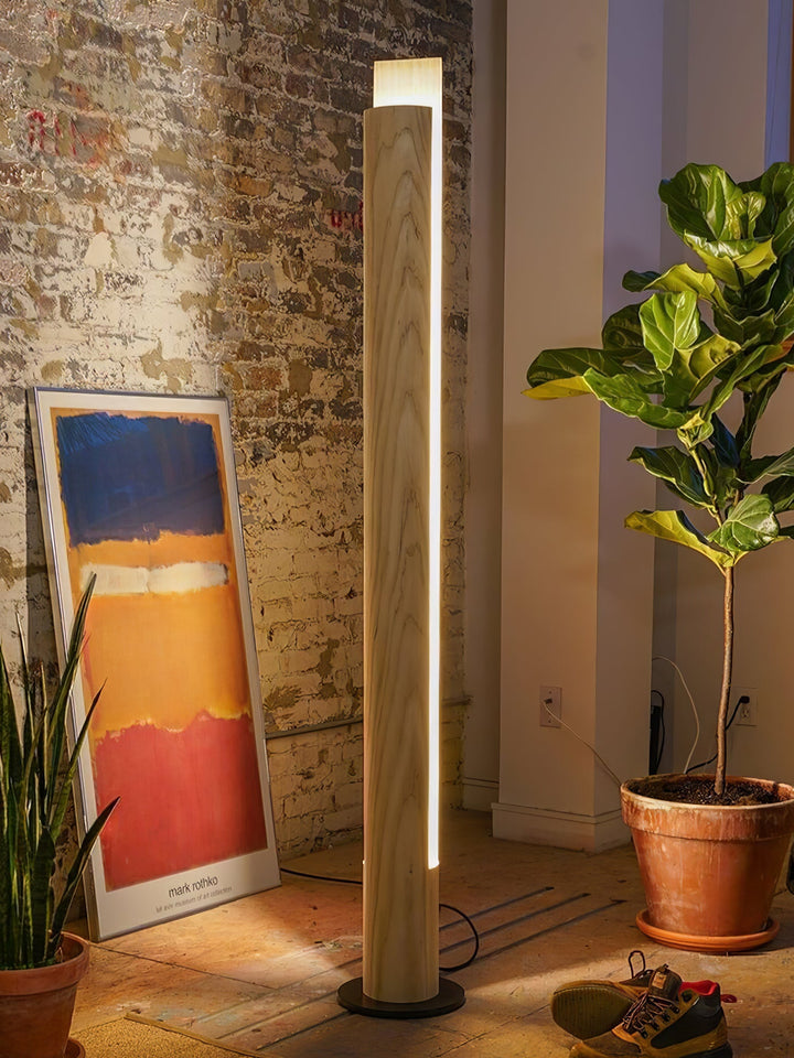 The Luminous Timber Column Floor Lamp exemplifies elegance through simplicity, standing as a beacon of warmth and modernity. A slender pillar of finely selected wood with a subtle, enchanting luminance rises from its robust base of deep black marble. This fusion of materials strikes a perfect balance between organic charm and architectural precision.