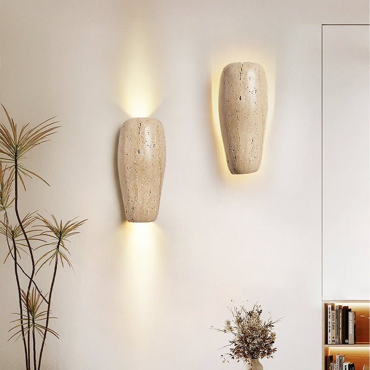 This wall sconce features a textured, stone - like body with a natural, earthy appearance. Emitting a warm, soft glow from its edges, it blends organic charm with subtle illumination, ideal for adding a cozy and nature - inspired ambiance to interior walls.