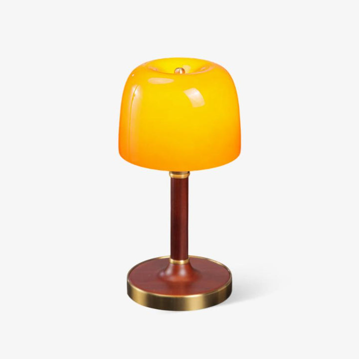 The Elio Table Lamp combines a vibrant amber glass shade with a refined wooden base and brass detailing. Its radiant glow and vintage-inspired design add character and warmth to any space, making it a striking yet versatile accent piece.