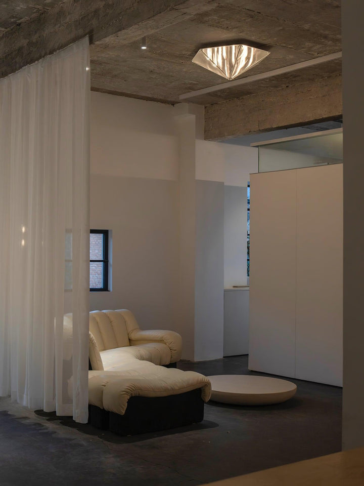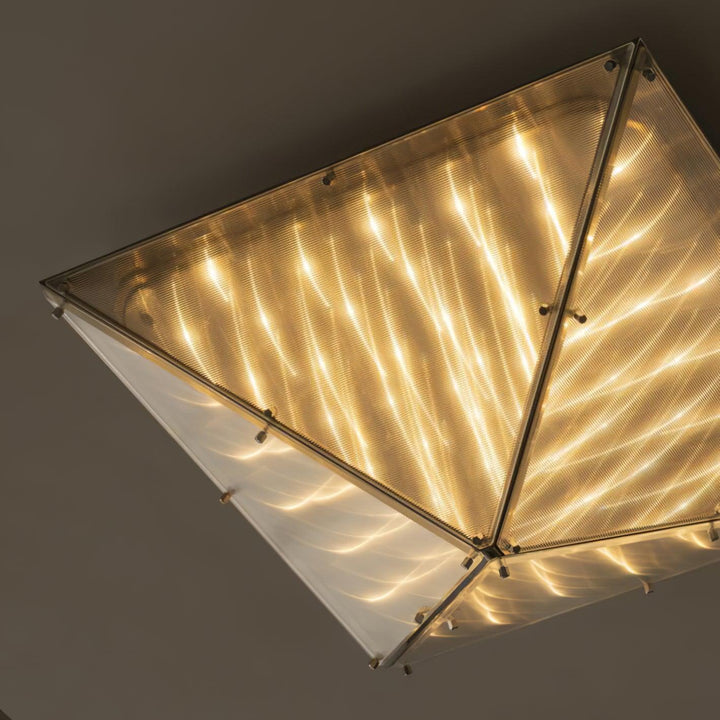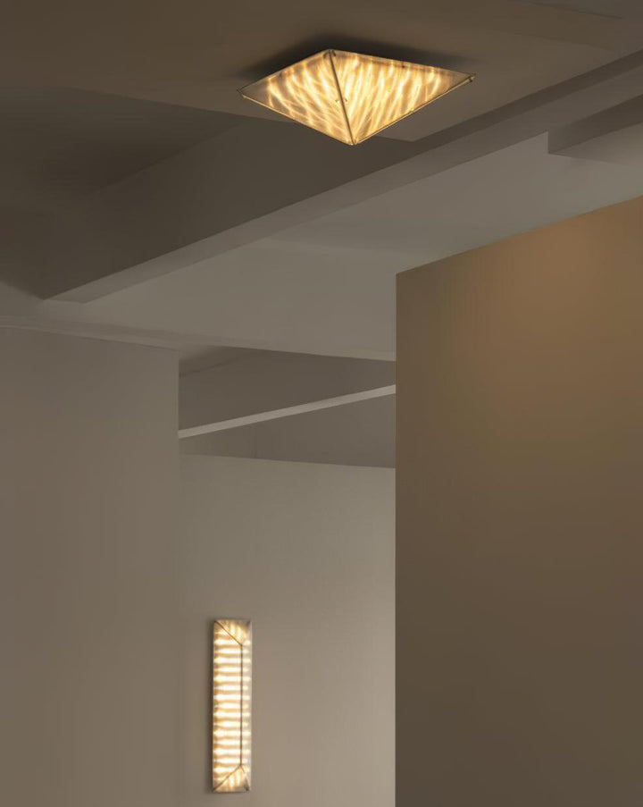 'Fragment' Celing lamp used Patterned glass that can distort the direction of light, and create a special effect, inspired by archetype of a western gothic church and the mysterious atmosphere created by the colorful windows in the church, transforming architectural language into his lighting series 'fragment'.