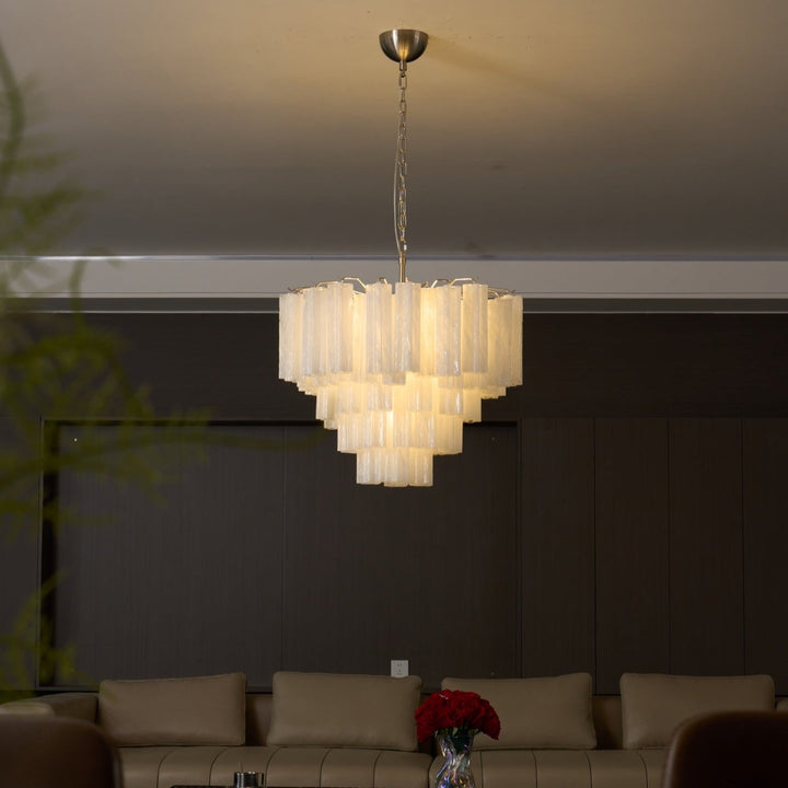 The Vakkerlight Frosted Murano Cascade Chandelier embodies timeless elegance with its cascading tiers of hand-crafted Murano glass tubes. Each frosted glass piece softly diffuses light, creating a warm and inviting ambiance. The chandelier’s refined brass chain suspension complements its sophisticated aesthetic, making it a perfect centerpiece for modern and classic interiors alike. Ideal for dining areas, living rooms, or grand entryways, this exquisite fixture brings a touch of Italian artistry and luxurious charm to any space.