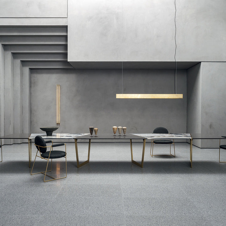 The LED light source is strategically concealed between the layers, allowing the light to "slice" through the gaps. This unique design creates an even, powerful wash of indirect light and a dramatic, three-dimensional shadow effect on the wall. It is perfect for modern hallways and galleries.