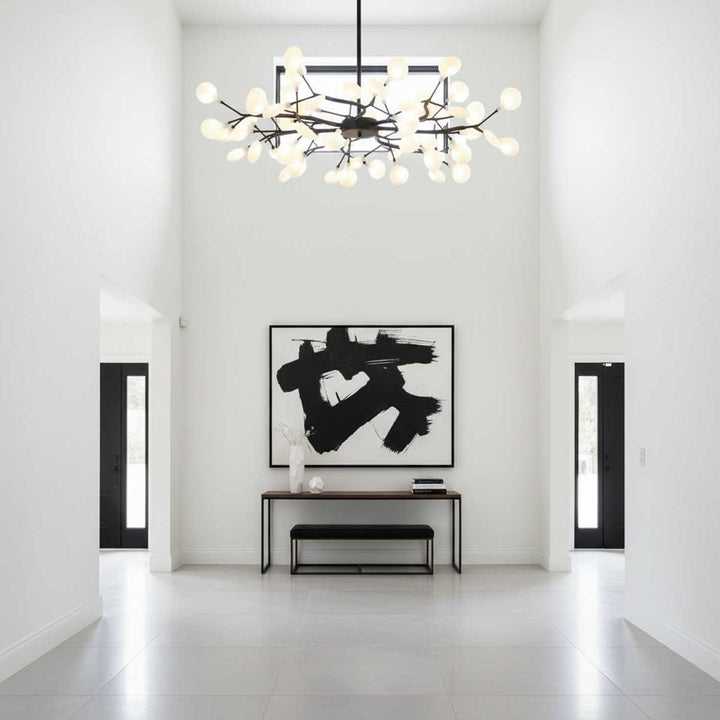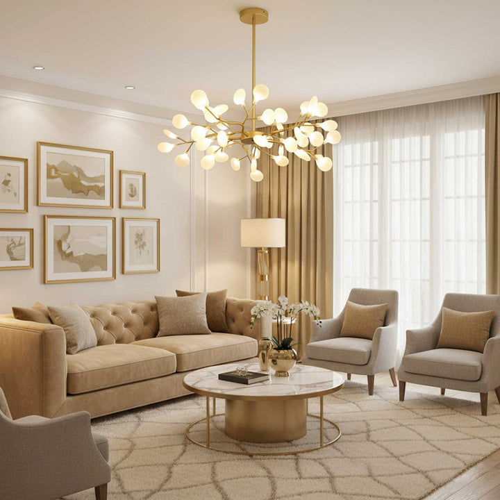 The modern chandelier with artificial satellite design and firefly shape has delicate texture and creates a unique feeling. High-end design creates a beautiful atmosphere, which is very suitable for living room, bedroom and restaurant.
