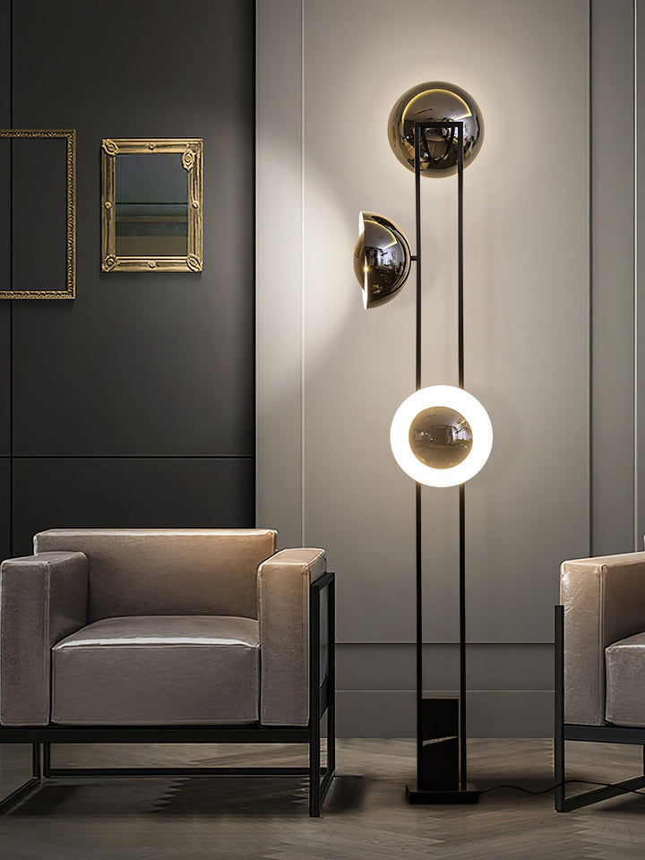 The timeline, past, present, and futures are the inspiration and essence of this unique and iconic collection. A perfect balance and elegance between materials, technology, and proportions. This contemporary, opulent Modern Black Three-Lights Floor Lamp will glam up your space. This floor lamp, which has three lights, will add a gorgeous and elegant touch to any residence. The metal base and black lampshade together give it a chic yet contemporary appearance. In addition to enhancing a sleek and contemporary look, the high material and polish also guarantee long-lasting use.