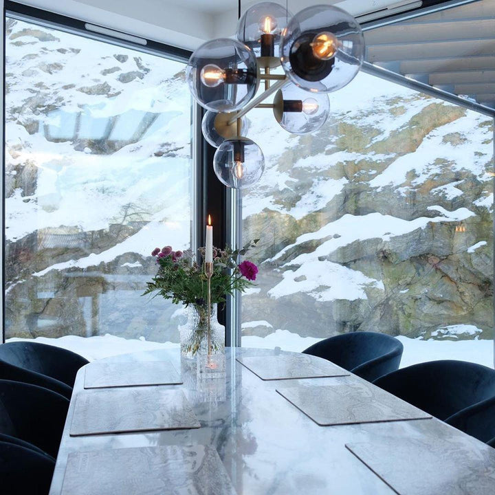 Like beads on a string. Perfectly rounded glass balls create a reflective, shining light in any room. The Orb pendant's light creates an exclusive atmosphere and has a clean, pared-back effect as well as being refreshingly casual. The combination of brass and glass adds an industrial edge to your home.