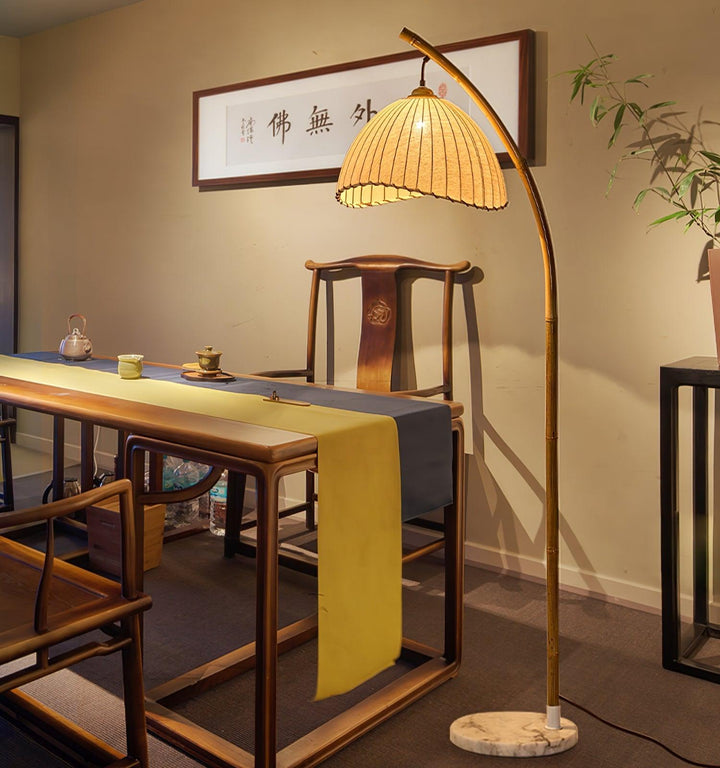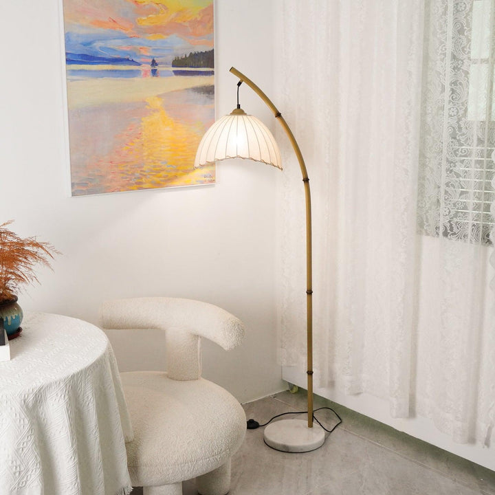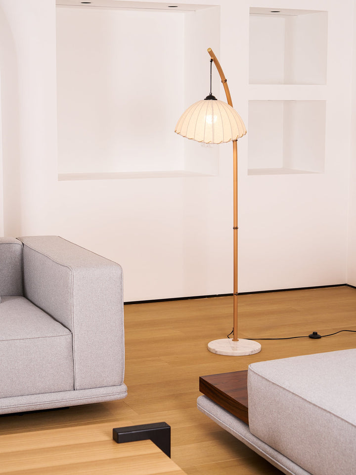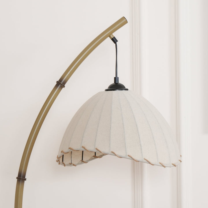 The Sanna Floor Lamp is an eloquent addition to any room in your home. Crafted with a curved bamboo base and manual cloth shade, this lamp casts a soft and warm light that creates a cozy and inviting atmosphere. The bell-shaped shade provides perfect illumination for reading and relaxing. Add this lamp to your living room for a unique, eclectic look.