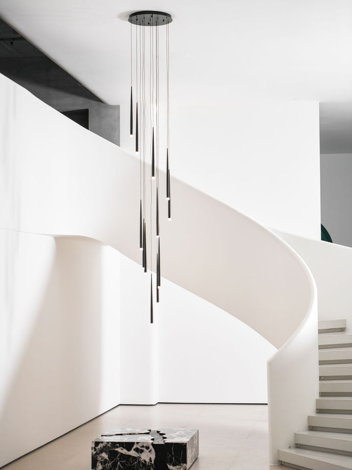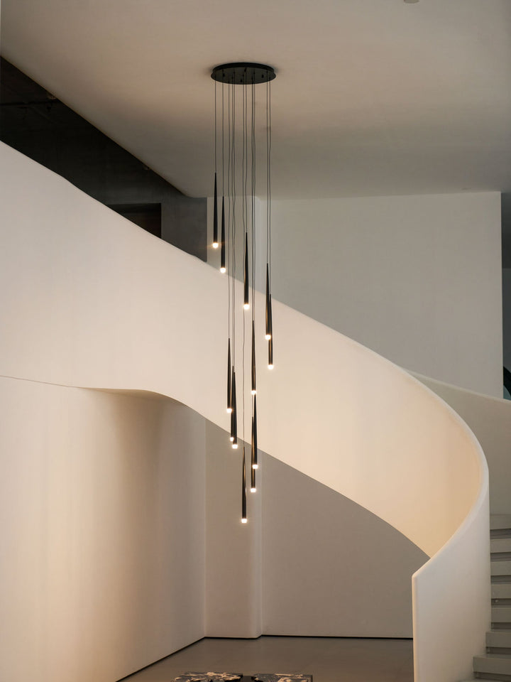 The Slender Cone Chandelier are a collection of hanging lamps designed by Vakkerlight. The Slender Cone Chandelier is refined and slender, projecting a pleasing accent lighting.