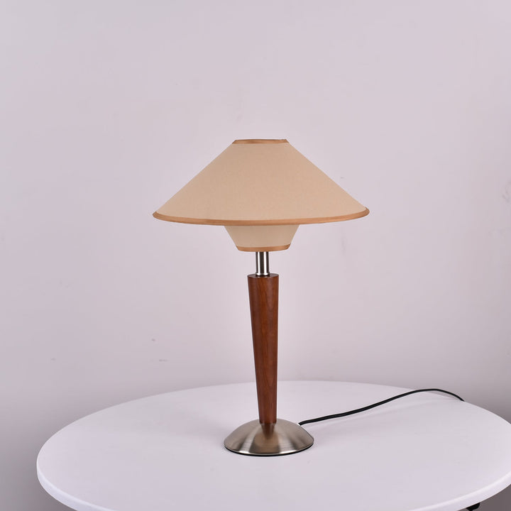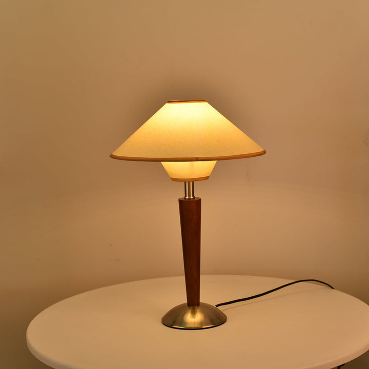 The Talonwood Table Lamp from Vakkerlight features a sleek wooden base with a simple yet elegant fabric shade. The combination of wood and metal accents brings a perfect blend of natural and modern design, making it a great addition to any stylish room.