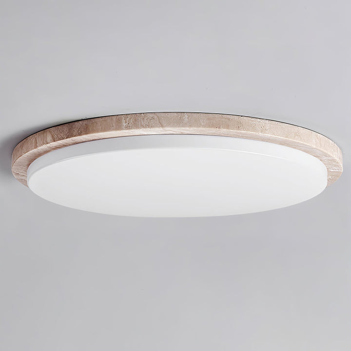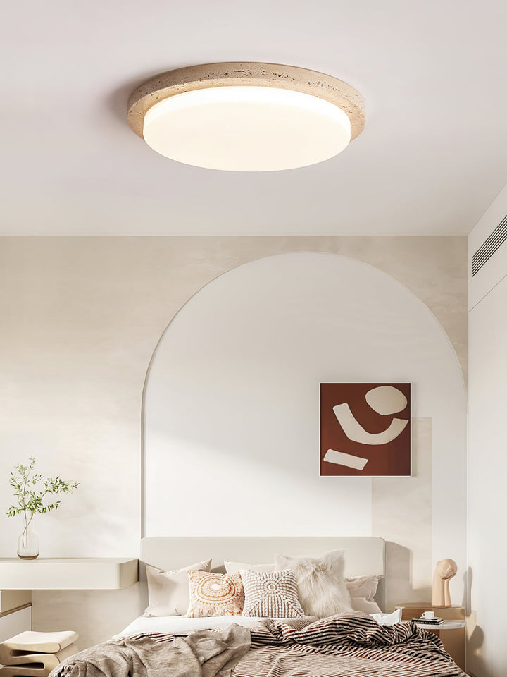 The Terra Round Travertine Ceiling Light by Vakkerlight is crafted from smooth travertine with a soft diffused glow. Its clean, modern design seamlessly integrates into any minimalist or natural-inspired space.