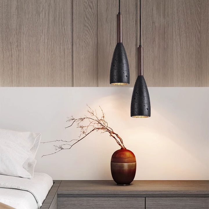 This pendant light features a teardrop-shaped shade crafted from travertine, highlighting the stone’s natural, earthy texture and warm tones. Accented with a wooden or wood-like connector and suspended by a cord, it emits a soft, ambient glow. Blending the raw, organic charm of travertine with natural materials, this piece adds a refined, artistic touch to dining areas, kitchen islands, or living spaces — merging timeless stone beauty with modern elegance.
