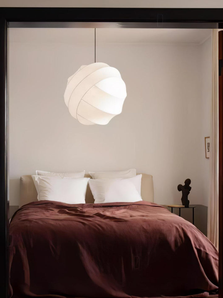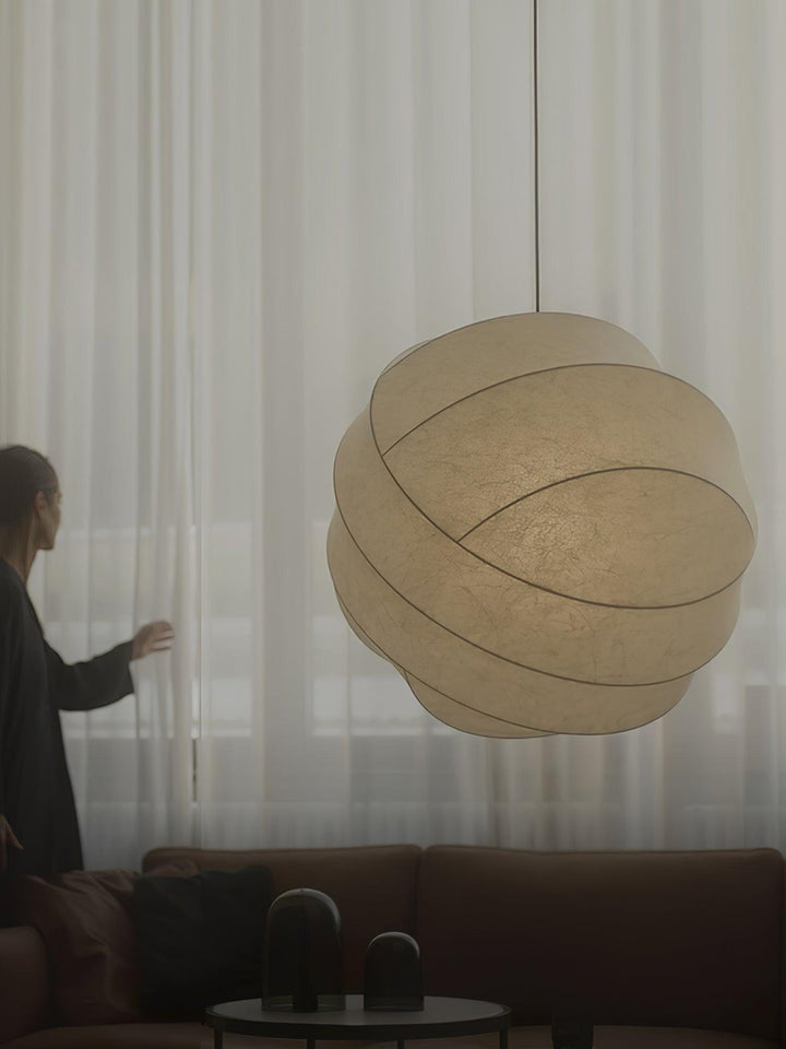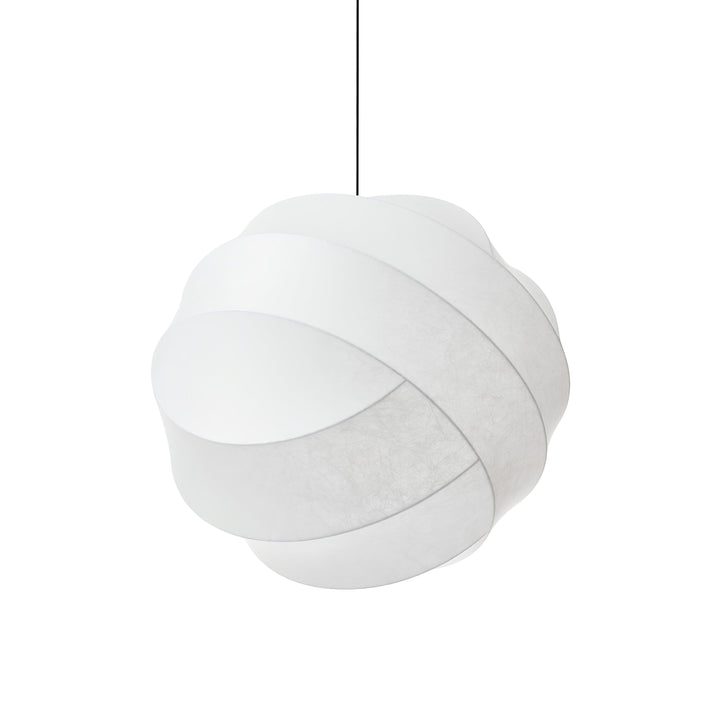 The Turner Pendant Lamp is an exquisite blend of astronomy, geometry, and craftsmanship. Its intricate yet delicate structure balances its precision orbital frame and its delicate fiber cocoon material. This unique and versatile hand-crafted lighting fixture is available in three sizes to suit any room's illumination needs.