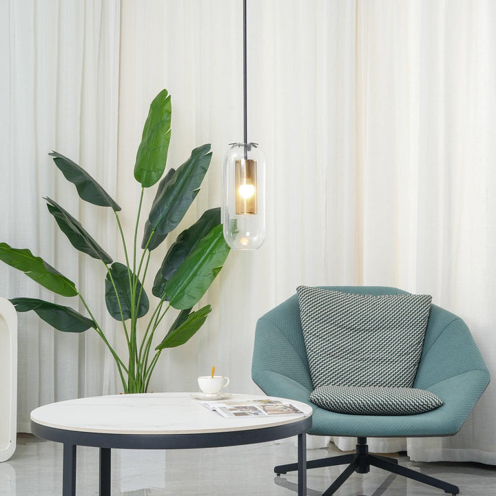 Iconic of the House, the Vadim suspension gives off a soft light which will know how to sublimate your interior. With its pure lines, Vadim features a golden steel rod on which the bulb is suspended, set with a perforated cage that lets the light shine through. The generous glass bulb contrasts with the delicacy of its steel stem and gives it elegance and timelessness.