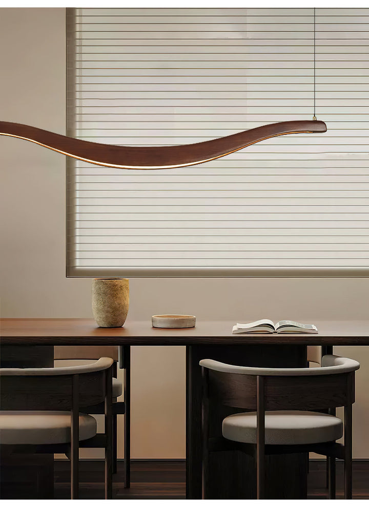 Experience tranquility and sophistication with our Waveform Chandelier. Its fluid, undulating shape and smooth wood finish create a calming ambiance in your dining room, kitchen, or living room. The integrated LED light strip provides soft, ambient lighting for a serene and elegant atmosphere. Add a touch of natural beauty to your space with this modern design.