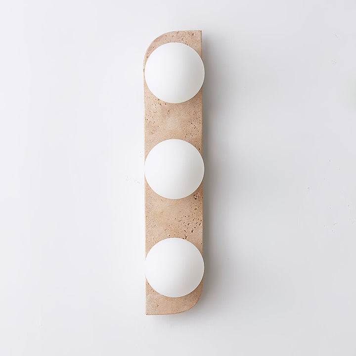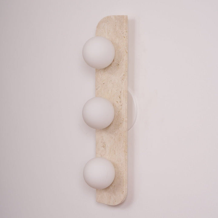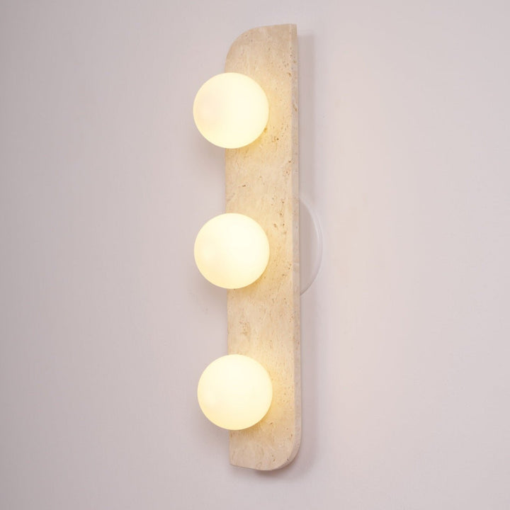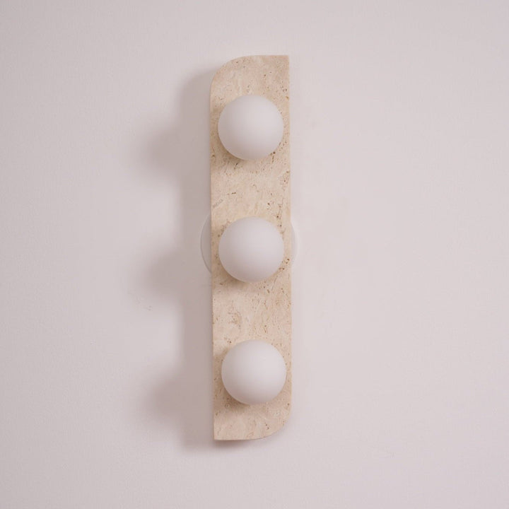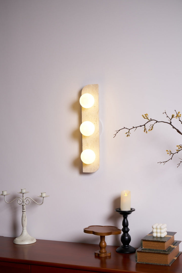 The Elysian Travertine Wall Light combines the timeless beauty of natural travertine stone with the soft glow of modern lighting design. Featuring three elegantly arranged spherical glass globes, this fixture diffuses a warm, inviting light, making it an ideal addition to both contemporary and minimalist interiors.