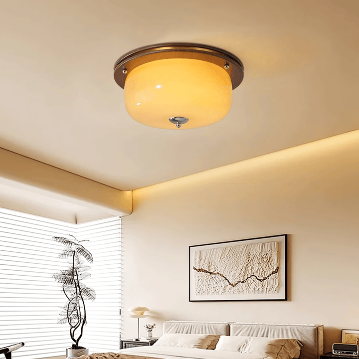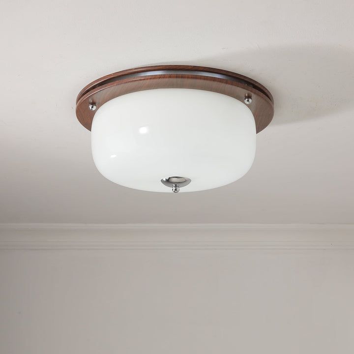 The Glass Dome Ceiling Light by Vakkerlight exudes a timeless elegance with its smooth, frosted glass dome shade that delivers a soft, ambient glow. Complemented by a wood-grain iron frame, this light fixture seamlessly integrates into any space, adding a touch of warmth and sophistication. Perfect for modern and contemporary homes, it creates a calming, inviting atmosphere for living rooms, bedrooms, or hallways.