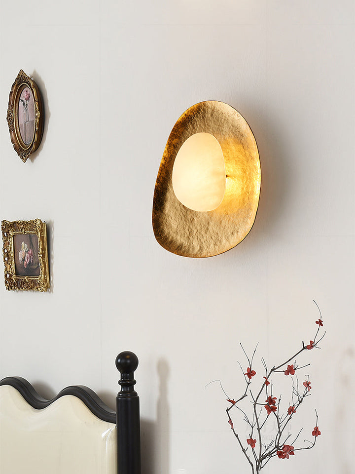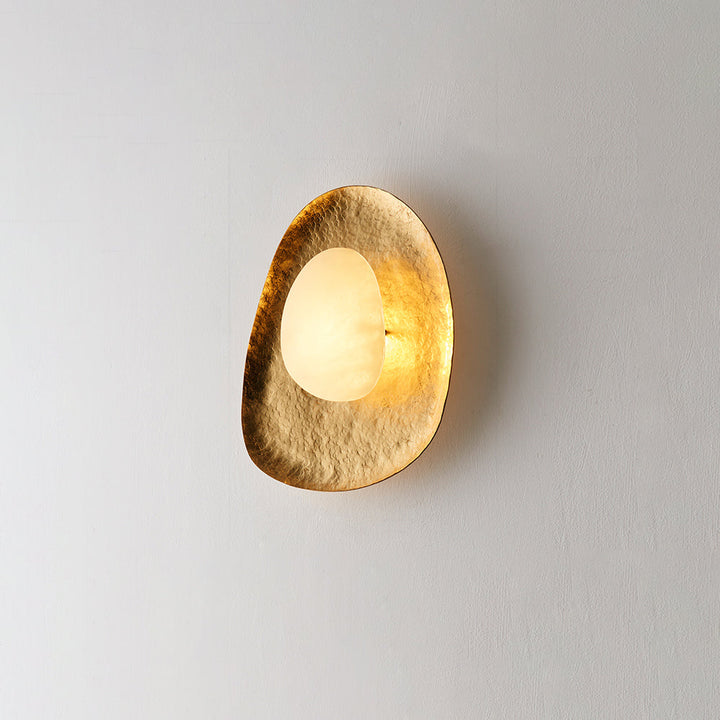 The Haloform Aurea Wall Lamp by Vakkerlight showcases a perfect balance of artistry and light. Crafted with a hand-hammered brass frame and a soft alabaster center, it radiates a warm, golden glow that enhances any space. Its fluid, asymmetrical shape adds a sculptural touch, making it an elegant focal point for living rooms, bedrooms, or hallways.
