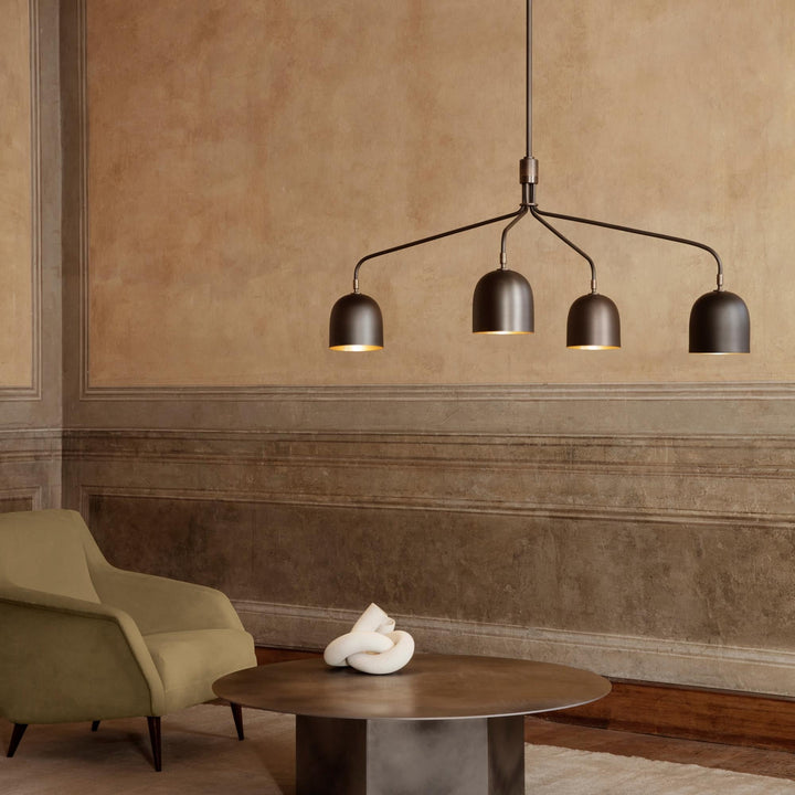 Introducing the Howard Chandelier from Radilum - a grand and sophisticated fixture inspired by New York's industrial landscape. Its four slender 'octopus arms' provide both warmth and strength, while the brushed brass shades lend a functional and modern aesthetic. Elevate any space with this Scandinavian celebration of style.
