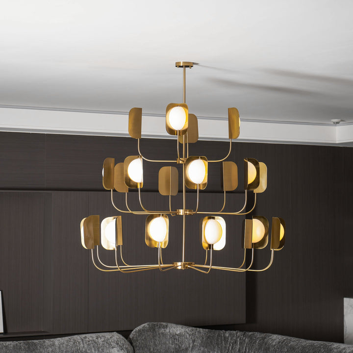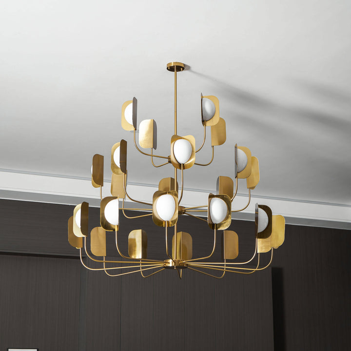This elegant chandelier is inspired by nature and features a light and eclectic structure in hand-forged iron with a polished copper finish that has been accurately researched. It doesn't belong to any particular style and fits both modern and classic interiors.