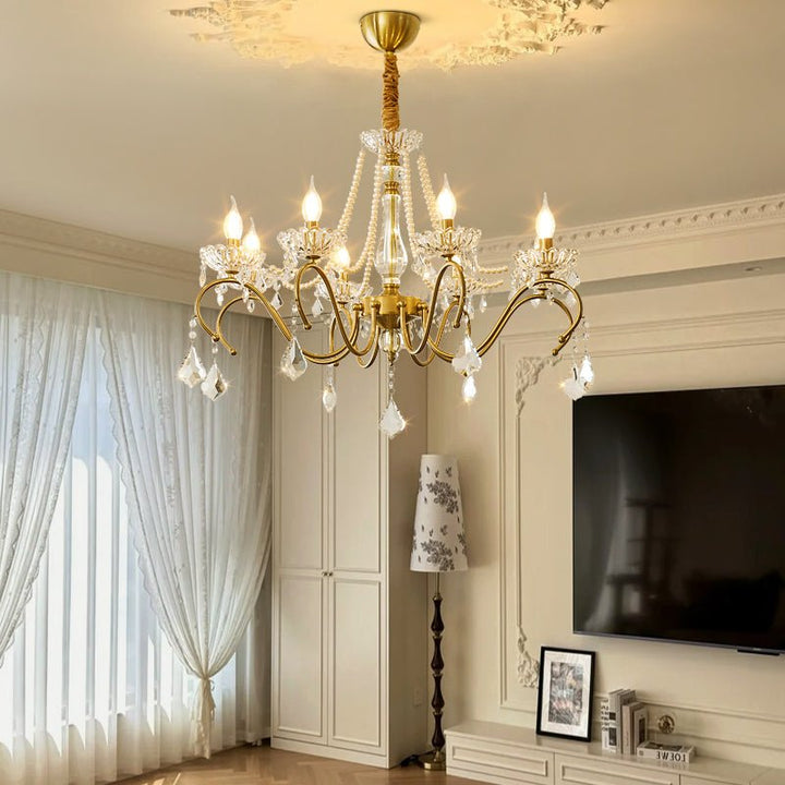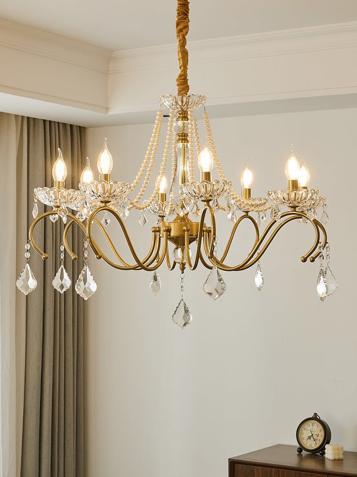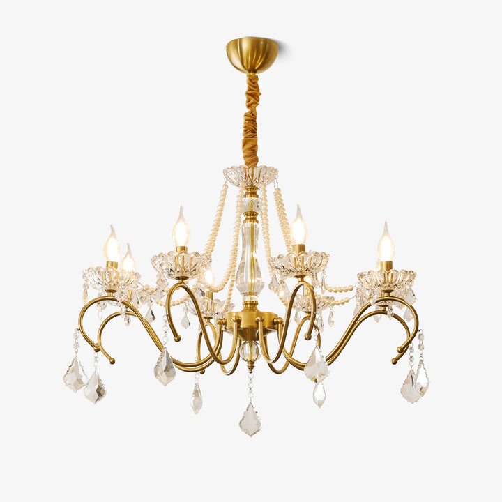The Sapphire Crystal Chandelier by Vakkerlight is a stunning blend of elegance and opulence, featuring intricate pearl details and brilliant crystal accents. The brass structure adds a luxurious, timeless touch to any room, while the cascading crystals and pearl strands create a captivating glow. Perfect for enhancing your living or dining space, this chandelier not only lights up your home but also elevates the atmosphere with its refined beauty and sophistication. Ideal for those seeking both beauty and functionality in their lighting design.