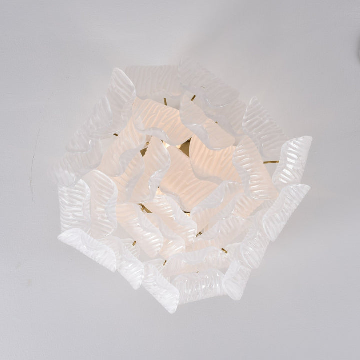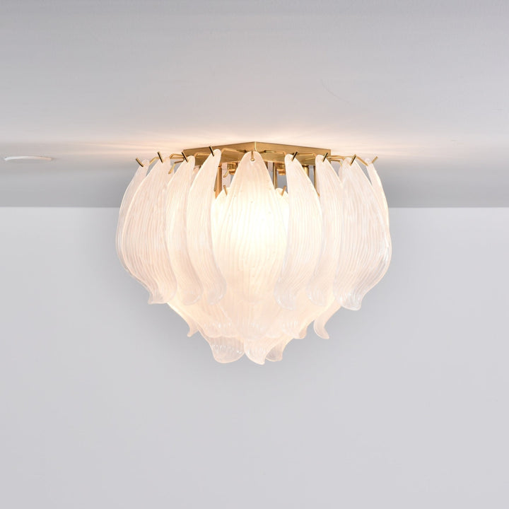 An exquisite ceiling fixture crafted from hand-blown Murano glass, the Tuliva Lamp evokes the delicate form of cascading petals. Each glass element reflects a soft, luxurious glow — ideal for refined interiors.