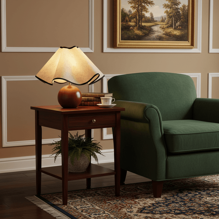 The Wavecrest Table Lamp draws inspiration from the serene flow of ocean waves. The fabric lampshade elegantly drapes like a cresting wave, while the solid wooden base provides a stable and natural foundation. This unique design combines the tranquility of the sea with the warmth of wood, making it a perfect statement piece for any coastal or nature-inspired décor.