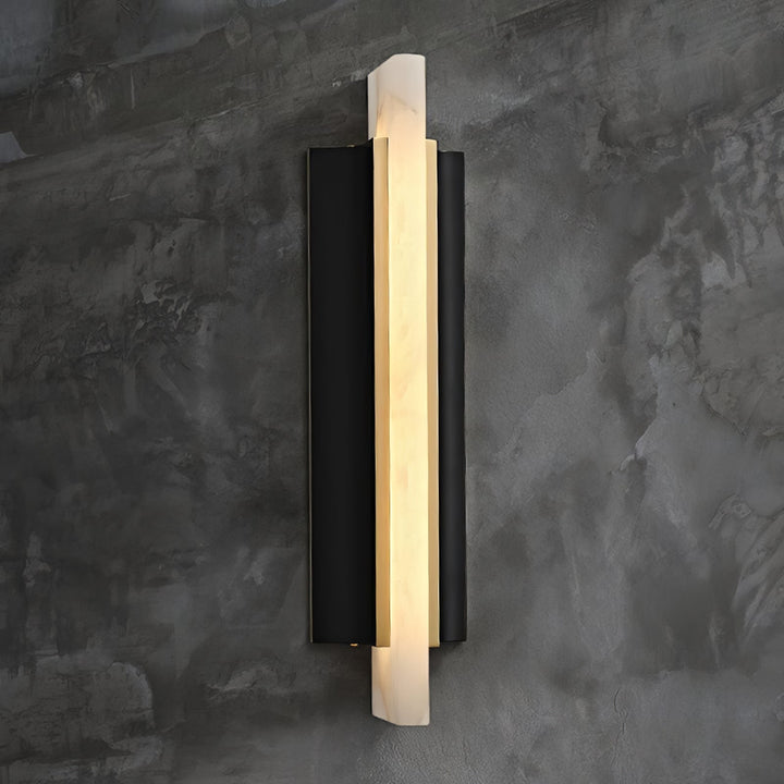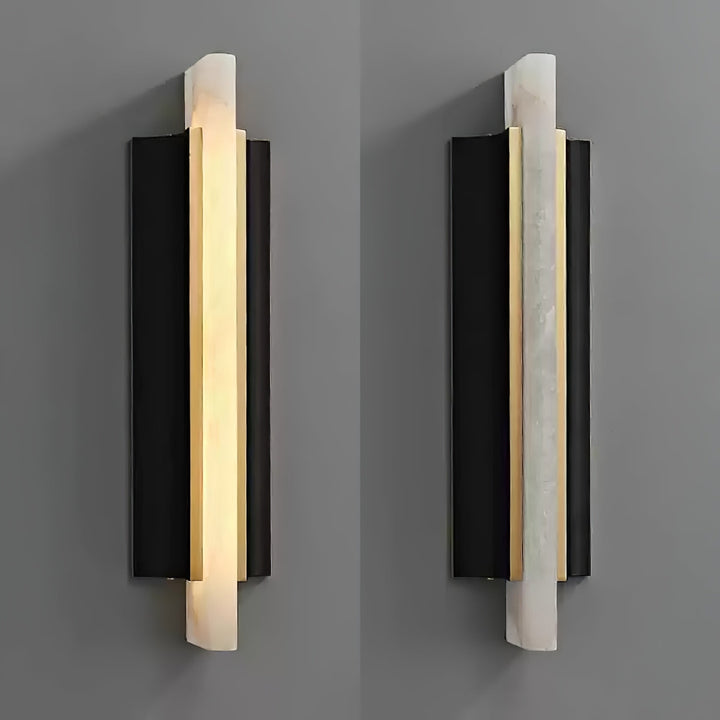 The Alabaster Blade Wall Sconce by Vakkerlight fuses bold geometry with the organic elegance of natural stone. A slender slab of luminous alabaster forms the centerpiece, flanked by sharp, matte black metal panels that create a striking visual contrast. The warm glow from within highlights the alabaster’s unique veining, casting a soft ambient light while maintaining a sleek, architectural profile. This modern wall sconce is ideal for contemporary interiors, hallways, or statement accent walls, showcasing Vakkerlight's signature balance of form, material, and minimalism.