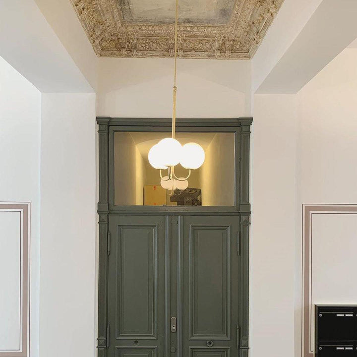 Elegant, airy, and refined, the Angle Chandelier offers a particularly simple design. This pendant light reveals an opaline glass sphere that diffuses the light in a pleasant way.