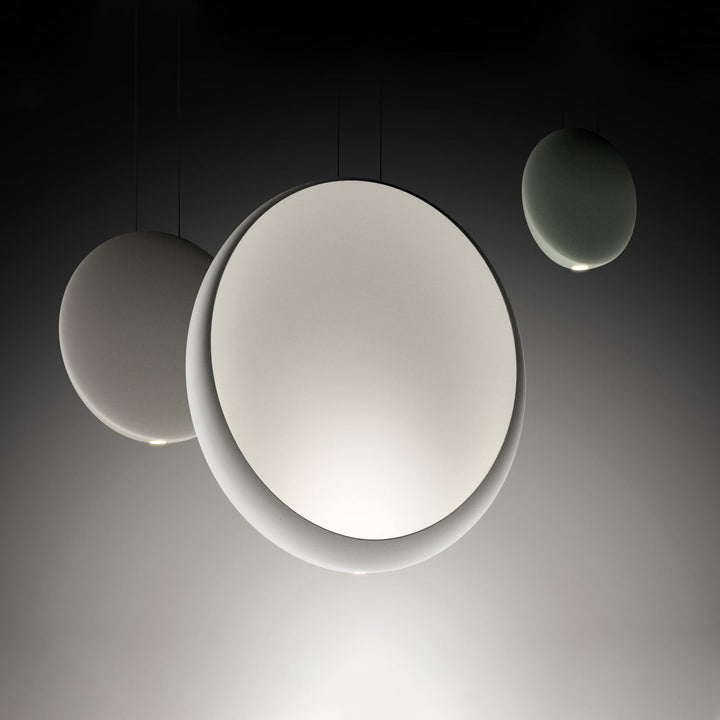 COSMOS is a pendant collection composed of lacquered thermoplastic discs inspired by satellites orbiting the moon. With the incorporation of energy-efficient LED technology, completely integrated into the interior of each piece, there is a perfect symbiosis between design and light source.