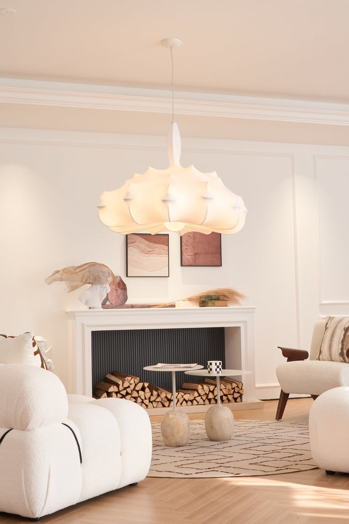 Elevate your space with the Cocoon Bloom Pendant Lamp. Inspired by the ethereal dandelion, its resin diffuser emits a soft, glowing light. The powder-coated steel frame adds durability and elegance, while the transparent layer captures the delicate beauty of a mid-flight bloom. Bring a touch of nature's understated elegance into your home.