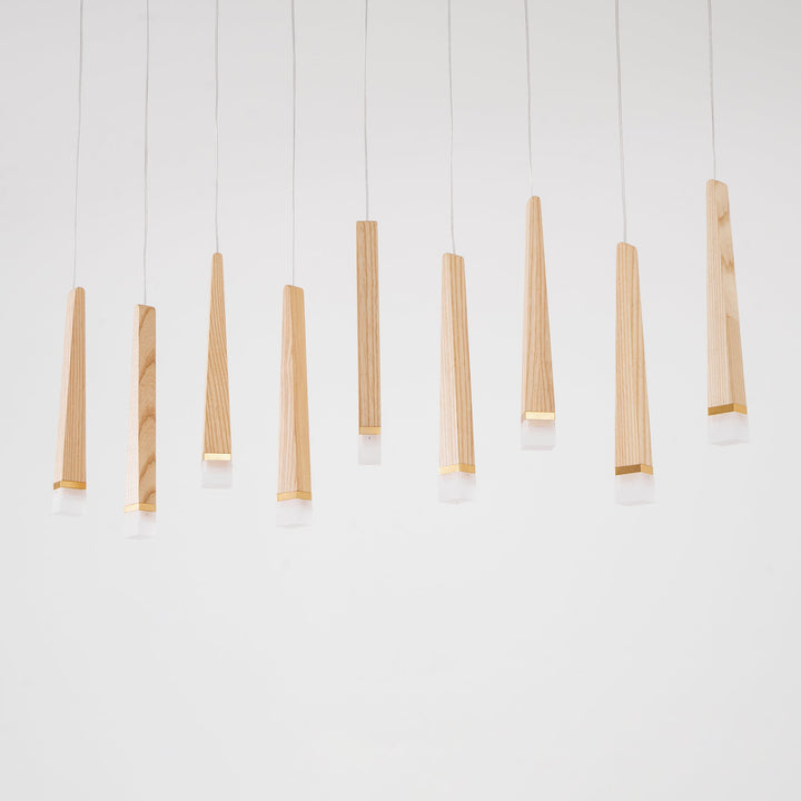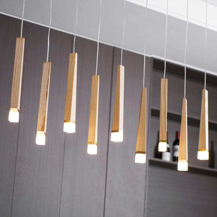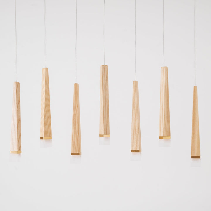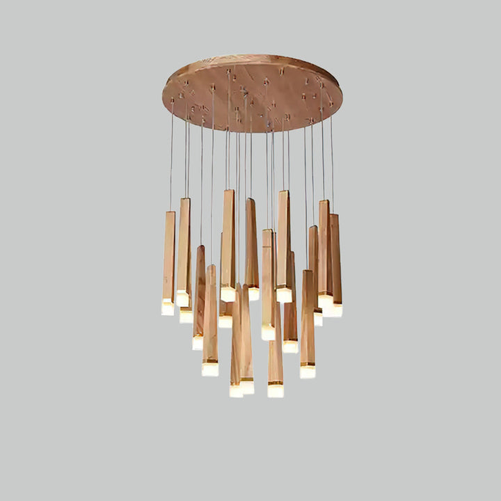 The Firewood Stick Chandelier is a contemporary light fixture crafted from sleek wooden sticks, mimicking the natural beauty of stacked firewood. With LED lights at the base and minimalist cables, this chandelier brings warmth and dimension to any space. Elevate your home or office with this striking and modern design.