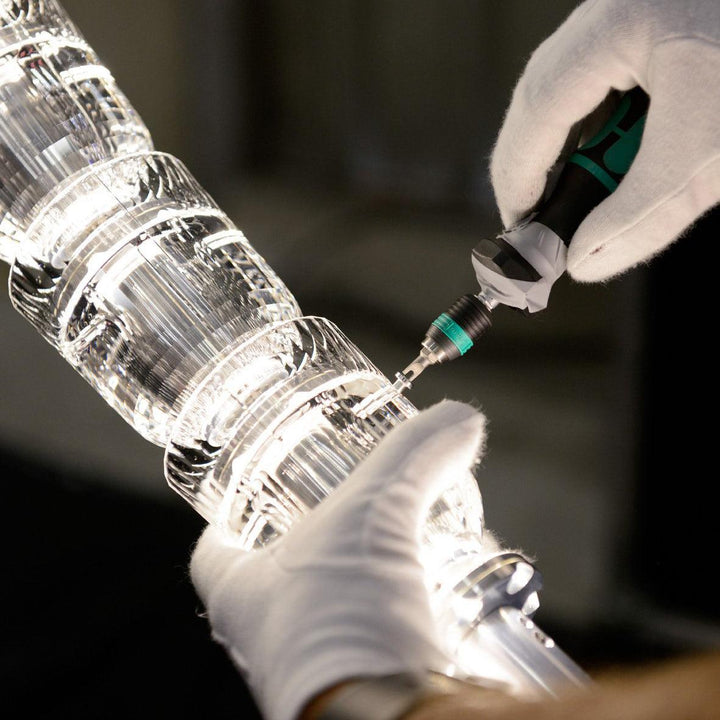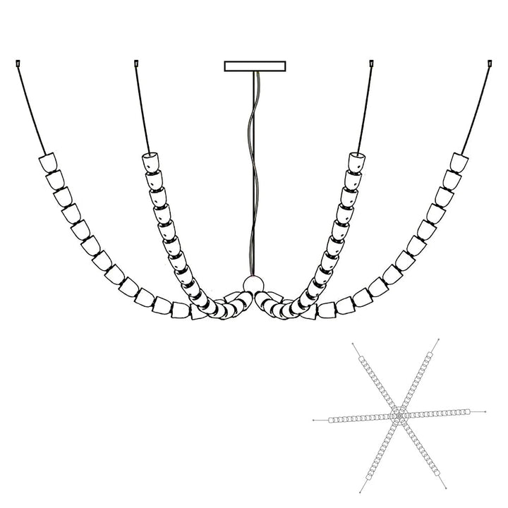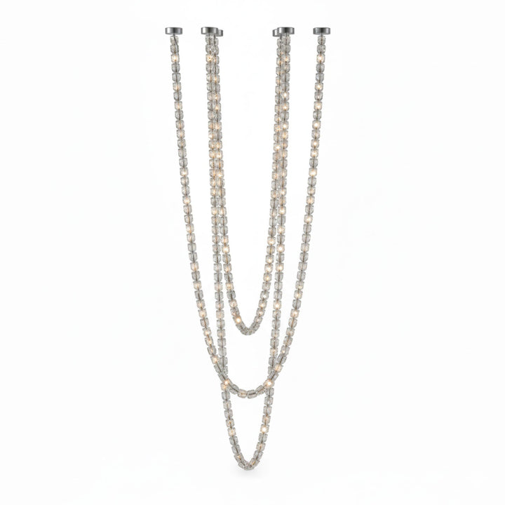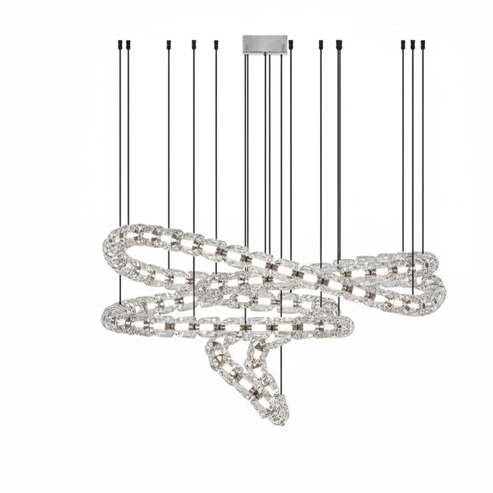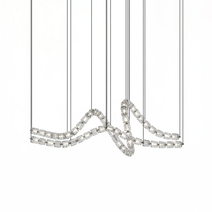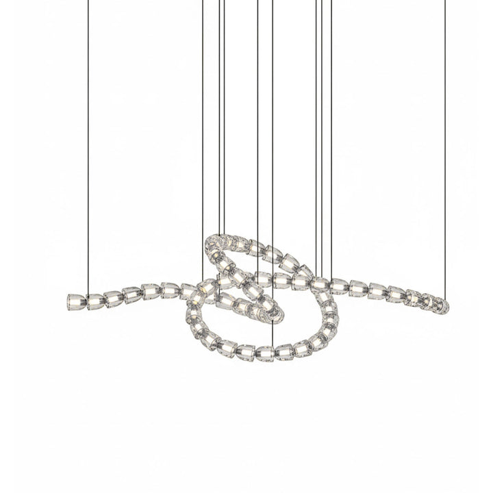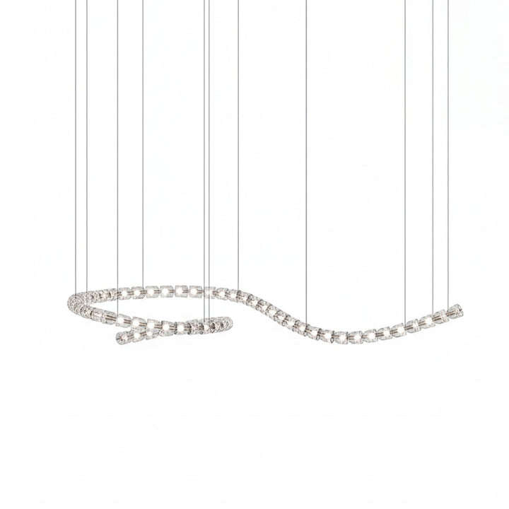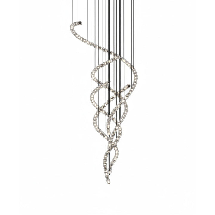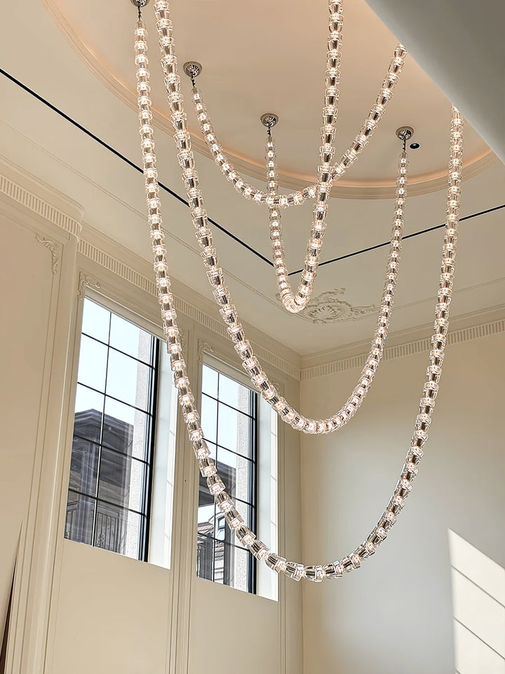 Designed by an award-winning artist, this crystal chandelier blends timeless elegance with modern sophistication, making it the perfect fit for any historic or contemporary setting. Suspended from the ceiling like a glowing, transparent snake, the chandelier’s unique design can be customized to form various shapes and configurations to suit your style. Ideal for modern living rooms, stairways, and luxurious spaces, this chandelier brings an artistic flair while providing an ambient glow.