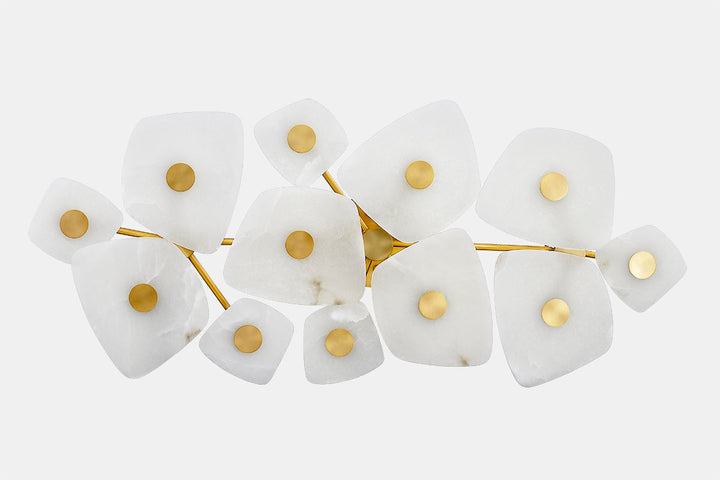 Marrying artistry with innovation, the Holmdel Ceiling Lamp showcases natural alabaster slabs illuminated by advanced LED technology. Each fixture features entirely unique alabaster formations supported by an elegant Aged Brass framework. Available as either a sconce or semi-flush mount in two sizes, this enchanting lighting solution represents the pinnacle of modern design while providing distinctive illumination for sophisticated interiors.