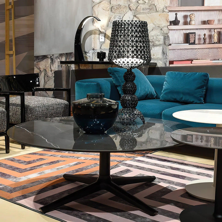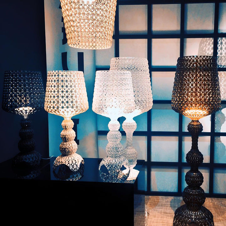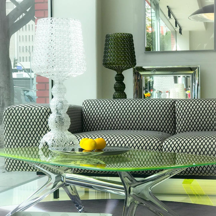 The Kabuki table lamp series is very decorative and brings an amazing light into the room. made of acrylic and has a easy and delicate look. Kabuki is available in five beautiful colours: blue, clear, green, white, and black.