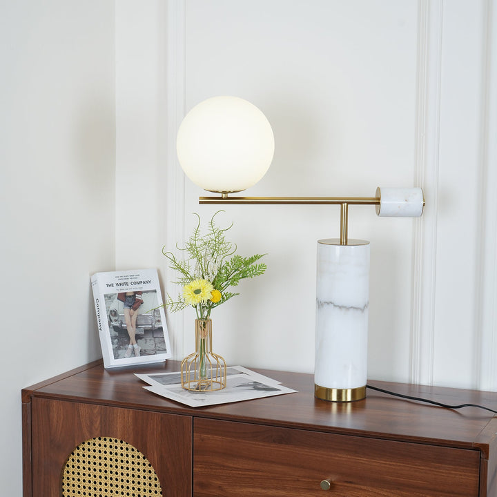The Lexi Table Lamp adds a modern touch to any room. Its minimalistic frame and marble base contrast create an elevated, balanced look. Bring a soft, inviting glow to any space with this stylish lamp.