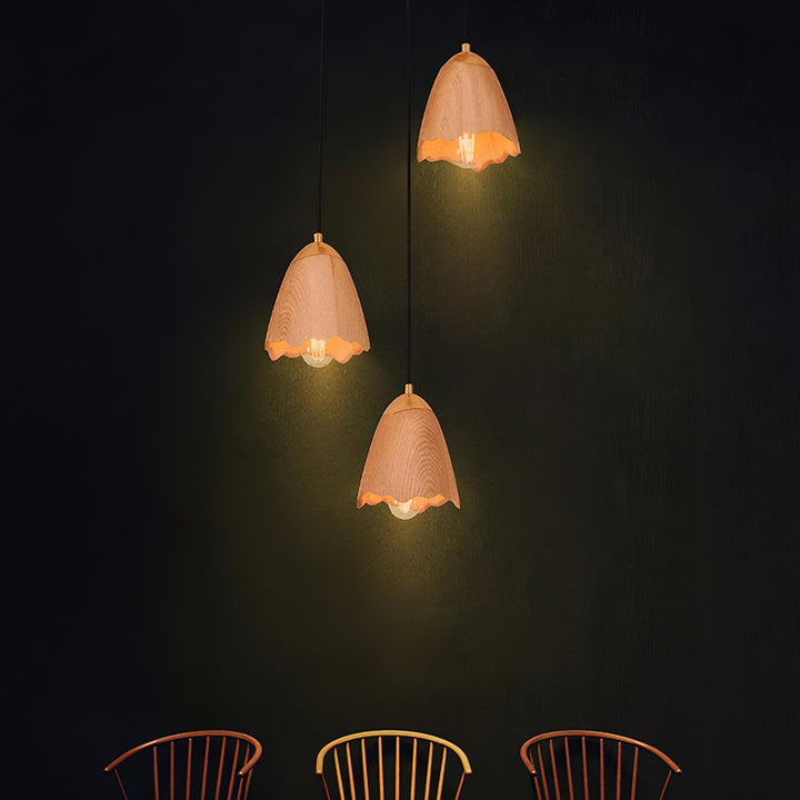 The Melody Bell Pendant Lamp draws its inspiration from the gentle chimes of bells, capturing the harmonious and soothing essence of a soft melody. The wooden lampshades, delicately shaped like inverted bells, create a warm and inviting atmosphere, perfect for adding a touch of natural elegance to any space. The wooden texture brings a rustic charm, while the design echoes the simple beauty of nature's melodies, making it a timeless piece for modern interiors.