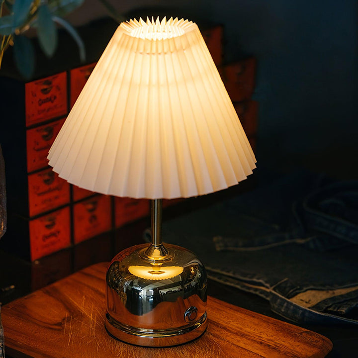 This small yet powerful rechargeable mini lamp fits in just about any spot, great for restaurant dining tables. The antiqued brass all metal mini lamp is topped off with a metal lamp shade with an integrated frosted diffuser up top, to distribute just the right amount of warm light to enhance the dining experience. This modern little rechargeable marvel now makes a dramatic statement piece to dining environments with total disregard to plugs and outlets on or near the table.