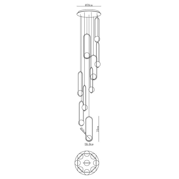 9-Lamps Size: Dia 70cm x H 200cm / ∅ 27.6″ x H 78.7″
