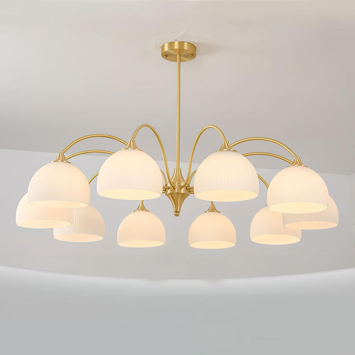 This modern striped glass bowl chandelier is the perfect way to elevate your home. Expertly crafted from iron materials, this statement piece is sure to make a striking impression. The simplistic Scandinavian design will bring an air of elegance to any dining room, living room, or bedroom. Add this chic piece to your home to bring a touch of luxury.