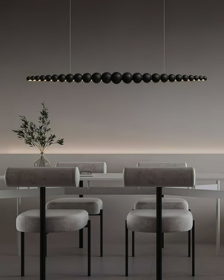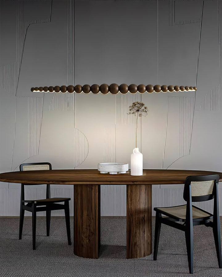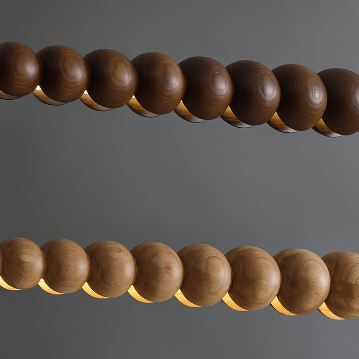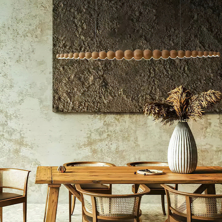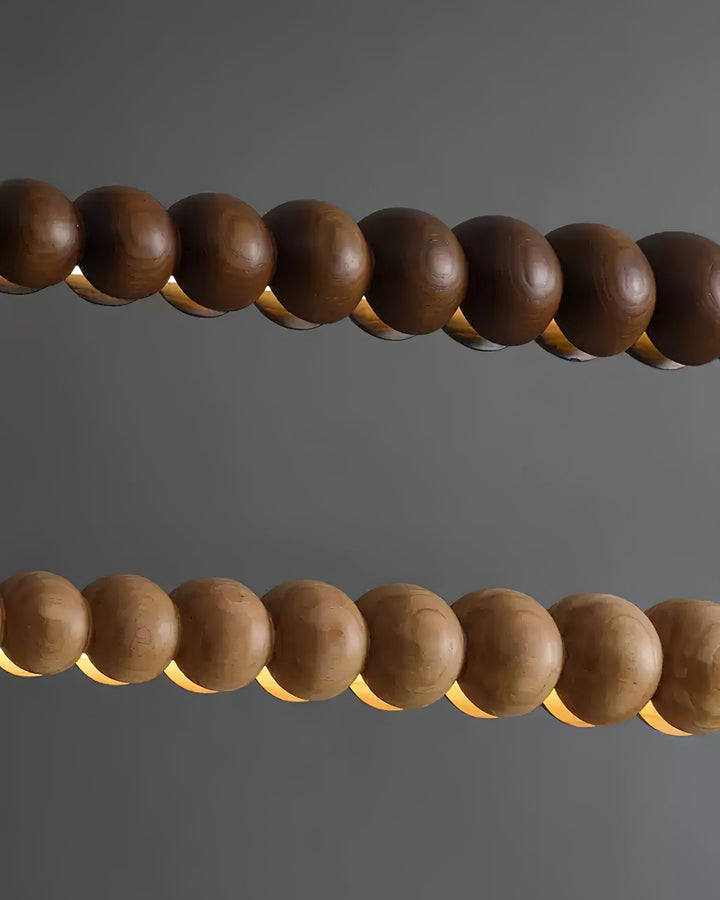 The Woodline Orb Pendant Light is inspired by the natural beauty of wood and the timeless elegance of spherical shapes. This exquisite light fixture features a series of wooden orbs, meticulously arranged in a linear fashion, creating a harmonious and balanced design. The warm, natural wood tones add a touch of organic charm, while the minimalist arrangement provides a modern and sophisticated aesthetic. Perfect for dining areas, kitchens, or living spaces, the Woodline Orb Pendant Light blends the organic with the contemporary, offering both functional illumination and a captivating artistic statement.