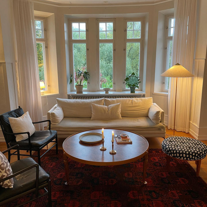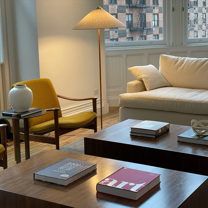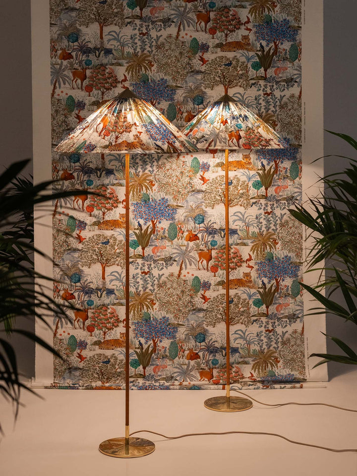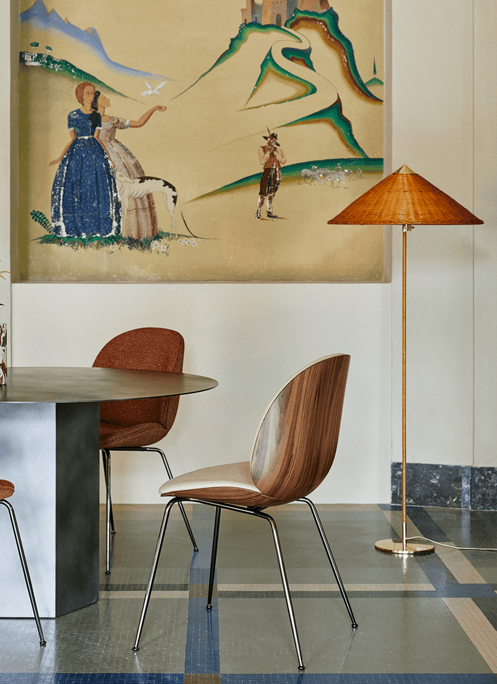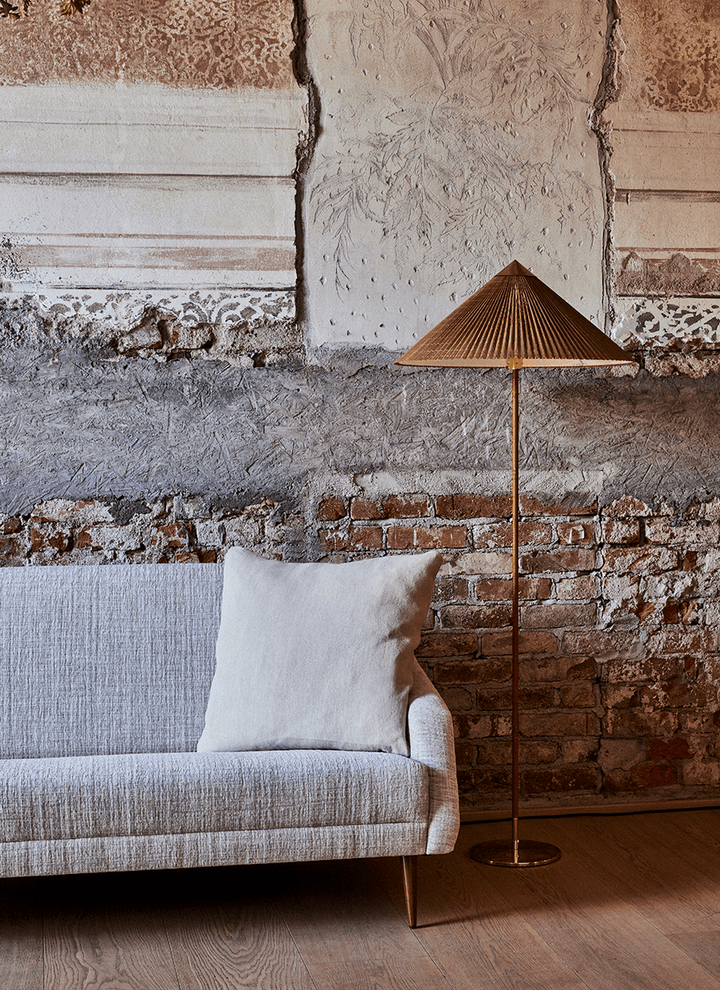 Characterized by its elegant and airy lampshade and rattan-covered stem, the 9602 Floor Lamp shows the designer’s limitless imagination and unparalleled ability to create designs of enduring beauty. Adding a playful, exuberant quality to the top, balanced by the more static form of the base, the 9602 Floor Lamp is perfectly suited for creating a gentle ambient light in the domestic living room.