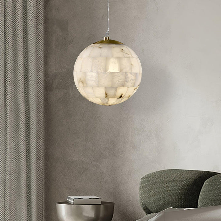 The Alabaster Ball Pendant Light is an elegant statement piece for any room. Constructed with brass and alabaster, this light is an eye-catching accessory. Its sophisticated and contemporary design makes it the perfect addition to any modern home.