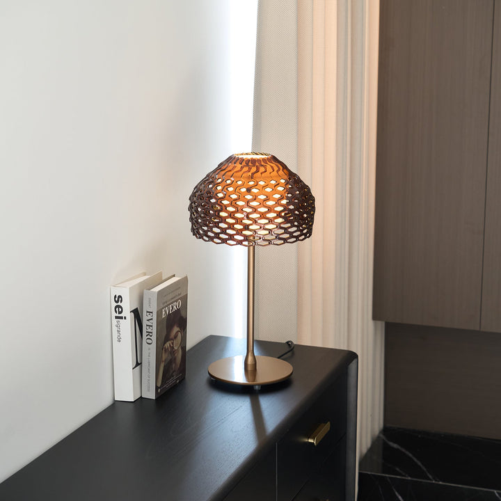 Introducing the Armadillo Table Lamp, inspired by the protective structure of the armadillo. This unique design not only diffuses light, but also adds a touch of elegance to any space. Experience the perfect balance of form and function with the Armadillo Table Lamp.